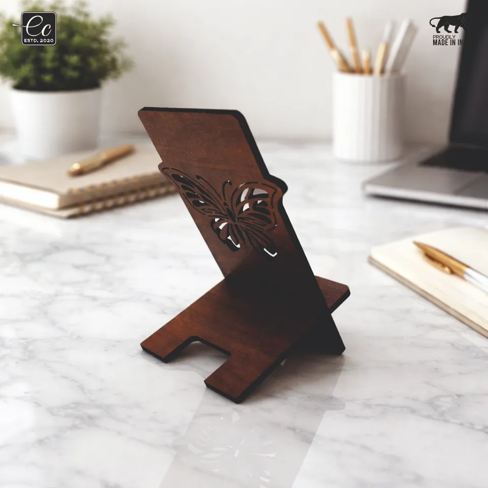 Add a touch of elegance and functionality to your workspace with this beautifully crafted wooden mobile stand. Designed with a delicate butterfly cut-out, this stand blends artistic charm with everyday utility, making it a perfect addition to modern office desks and home dΓ©cor setups.