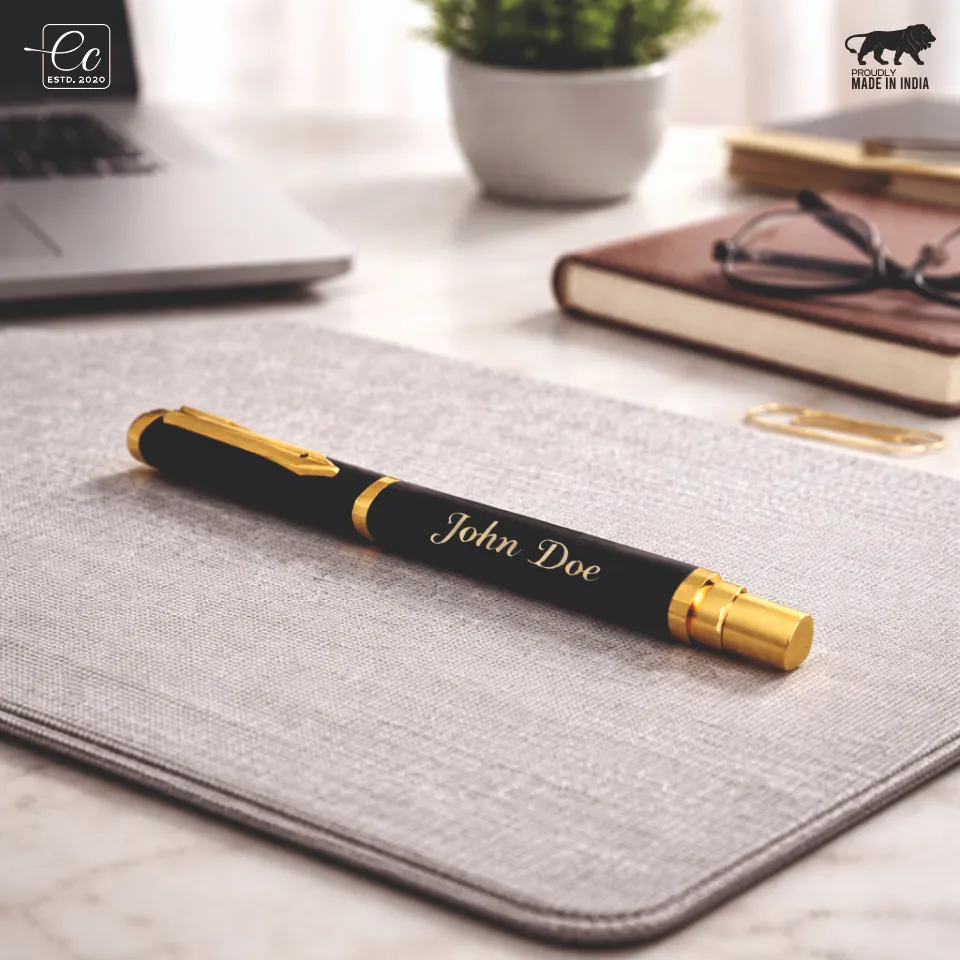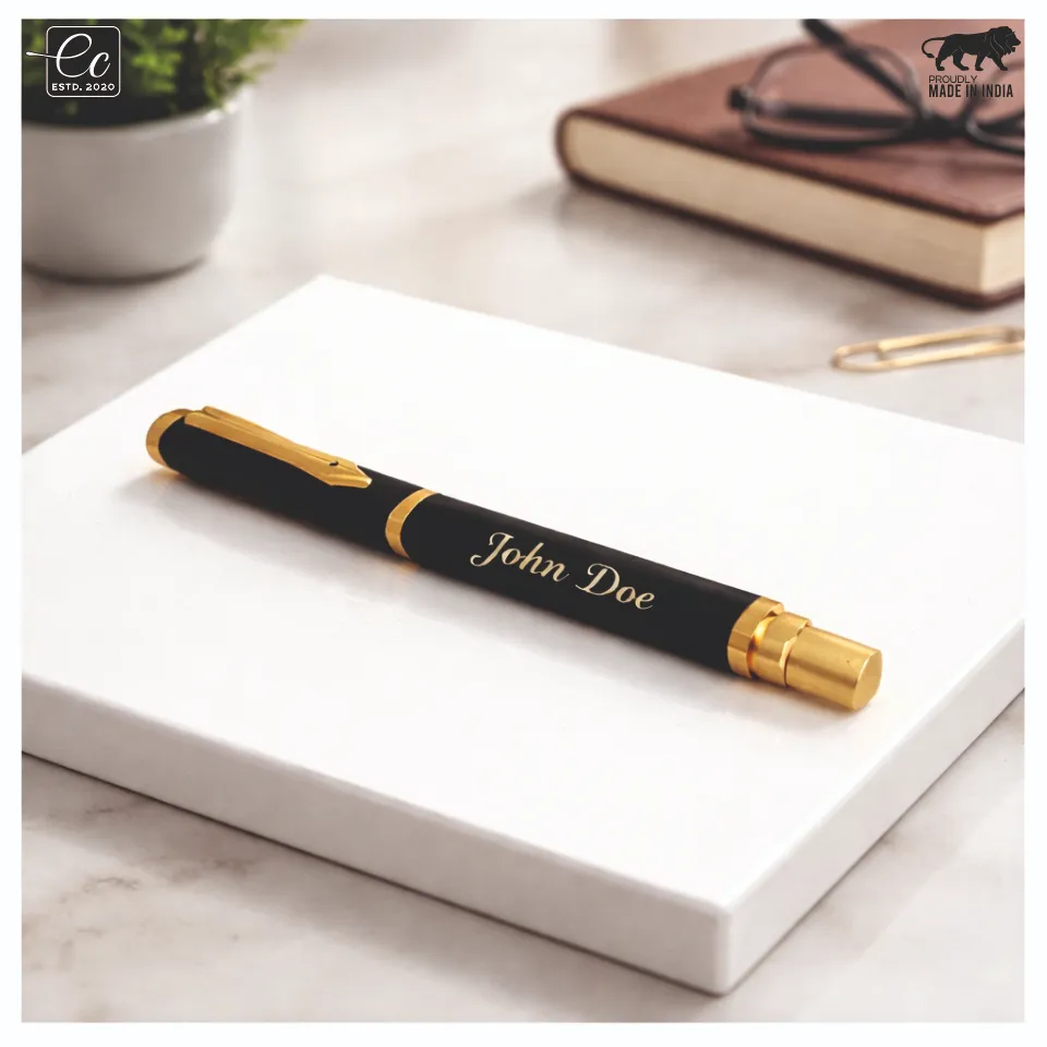 Make a lasting impression with our premium black and gold personalized metal pen, designed to reflect elegance, professionalism, and attention to detail. Crafted with a smooth matte finish and luxurious gold accents, this pen adds a sophisticated touch to every writing experience.