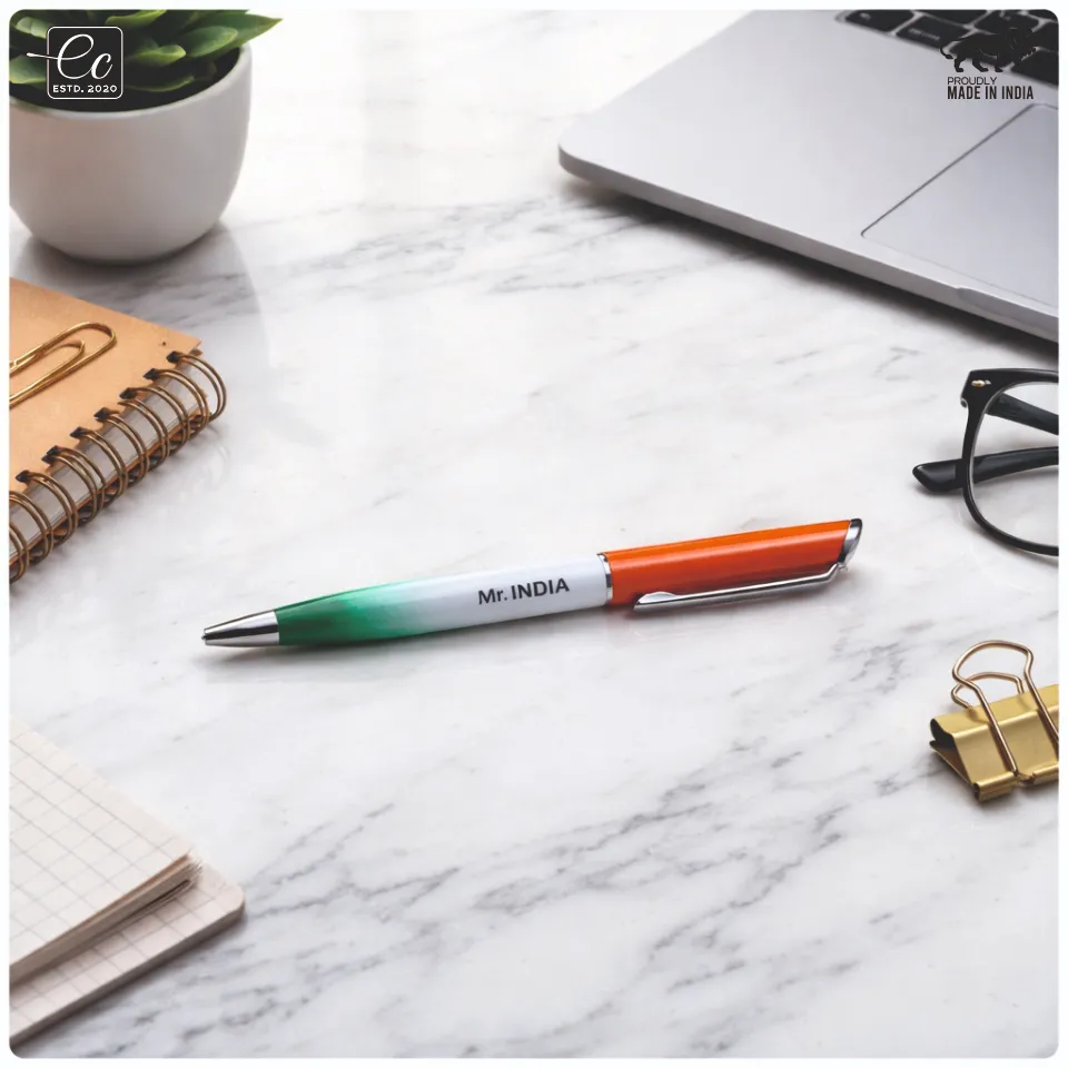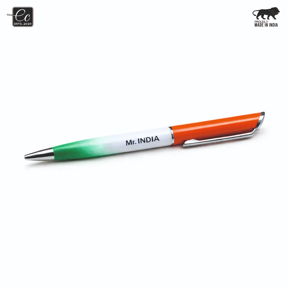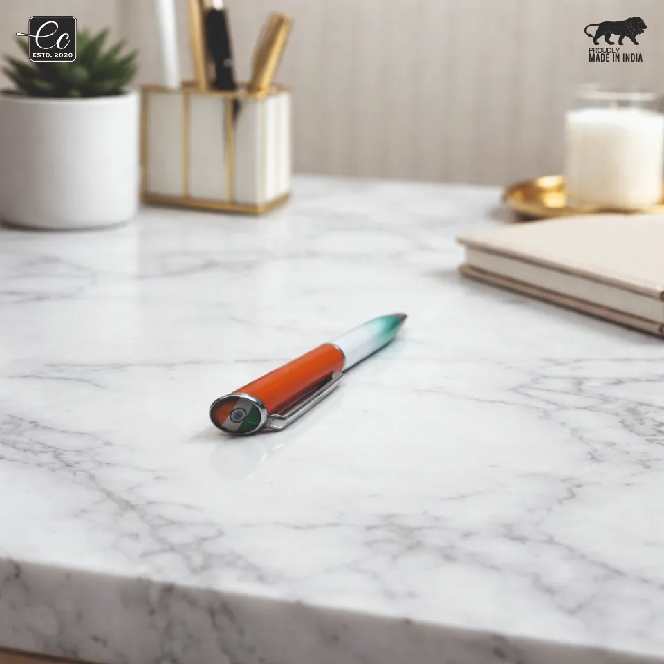 Elevate your everyday writing with this premium tricolor ball pen, thoughtfully designed to blend style, symbolism, and sophistication. Featuring a smooth gradient of green, white, and saffron tones, this pen reflects a refined aesthetic while adding a meaningful touch to your workspace.