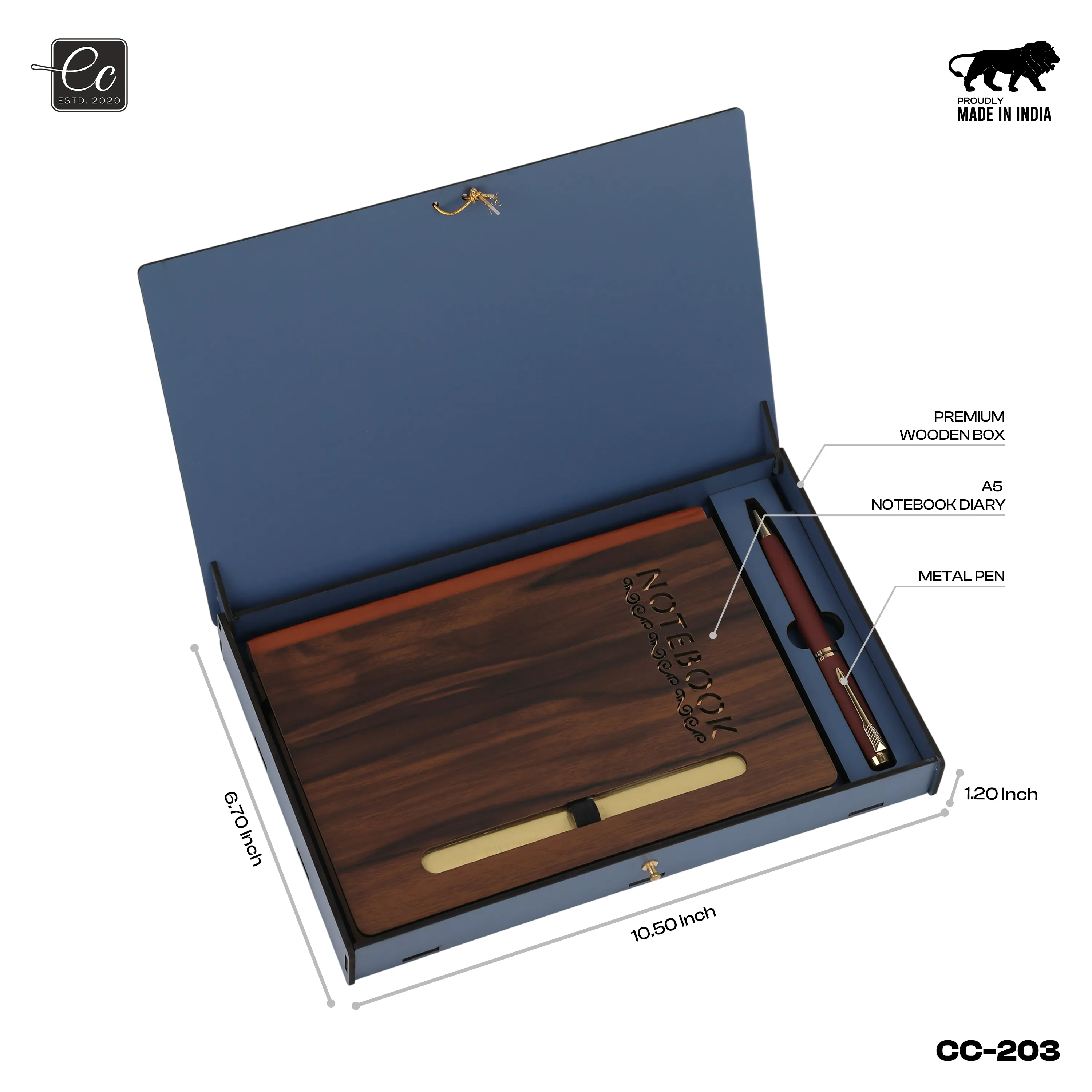 A5 Wooden Notebook: Premium A5 size wooden finish notebook that offers a classy and professional appearance, perfect for meetings and daily office use.