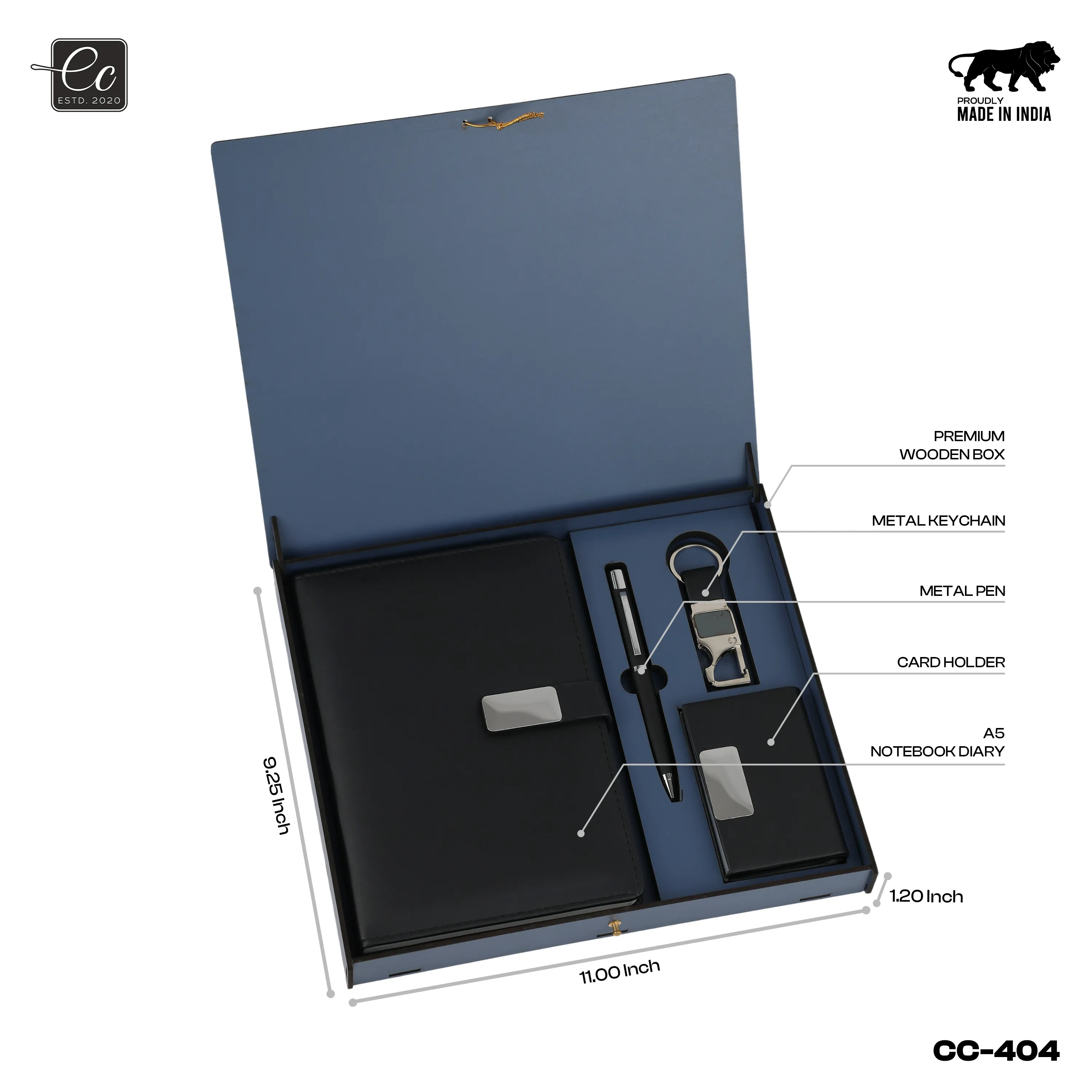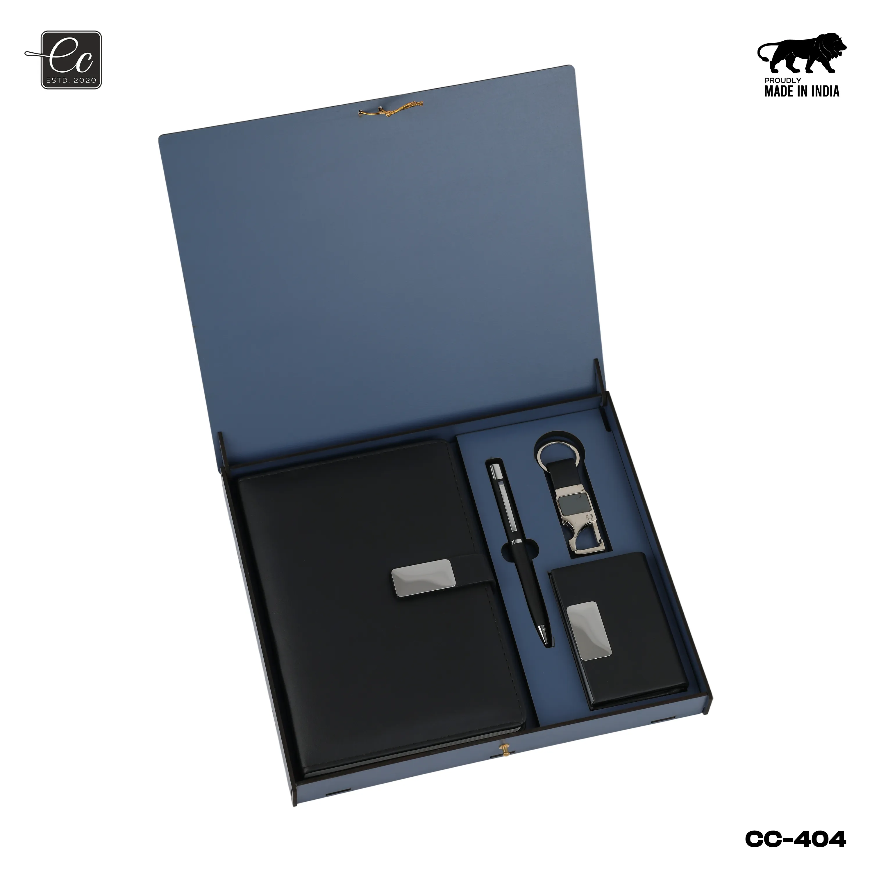 4 in 1 Corporate Gift Set includes Personalized Diary, Pen, Card Holder & Keychain