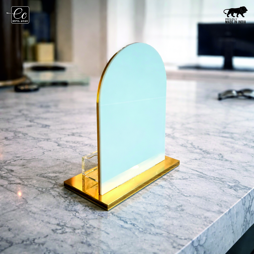 Crafted with a refined combination of premium acrylic and gold-finish metal, this stand delivers both durability and sophisticated aesthetics. The integrated visiting card holder adds extra functionality, allowing you to display your contact information alongside your QR code for seamless customer interaction.