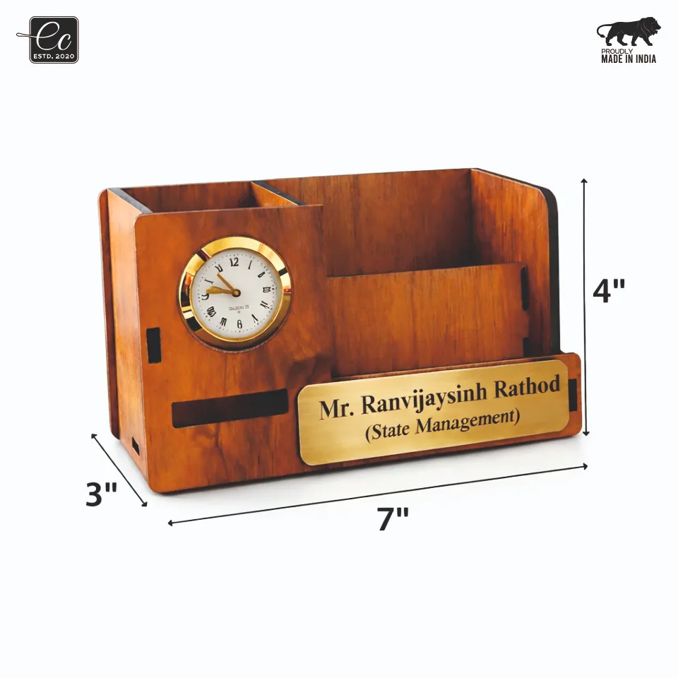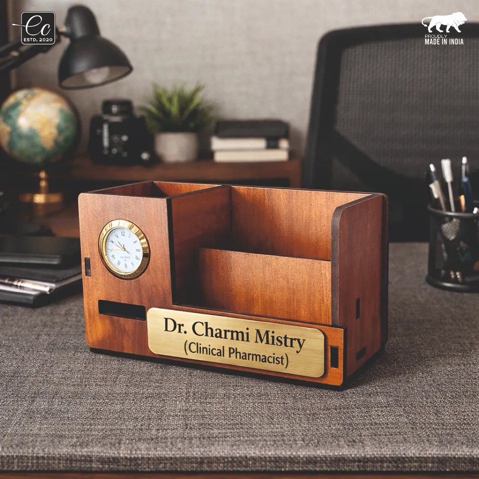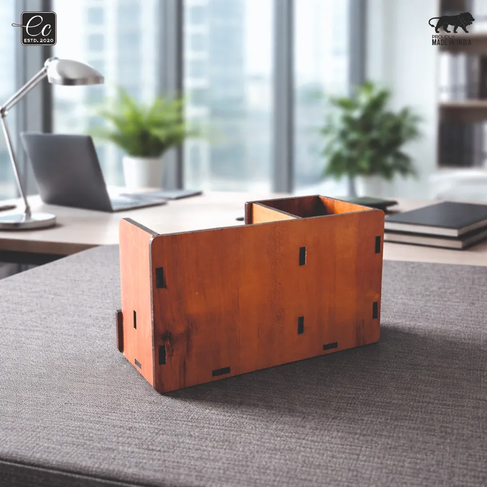 Upgrade any workspace with this luxury wooden desk organizer, thoughtfully designed to combine functionality with timeless elegance. Crafted from high-quality wood with a rich polished finish, it features multiple compartments to neatly store pens, visiting cards, mobile, and office essentials—keeping your desk clean and organized.