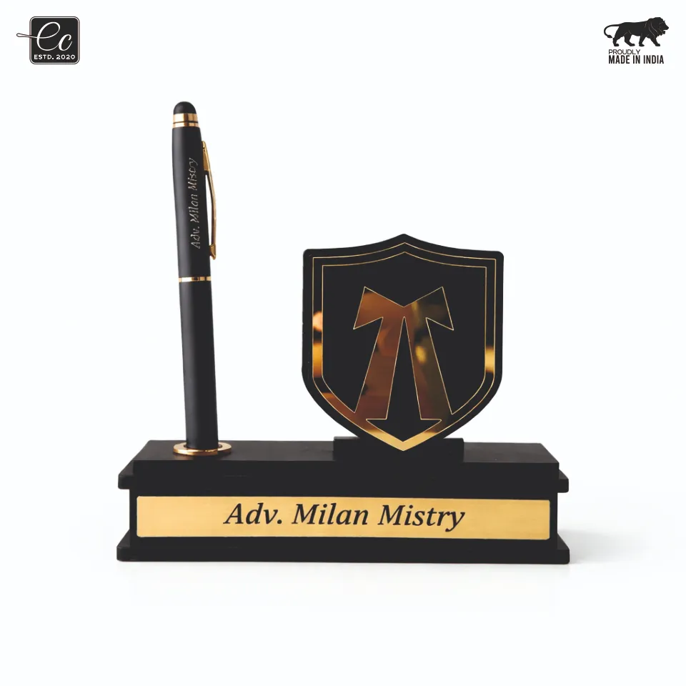 Upgrade your workspace with this elegant and professional desk name plate, designed especially for advocates, legal professionals, and corporate executives. Crafted with a premium black base and luxurious gold detailing, this desk organizer adds a refined and authoritative presence to any office setup.