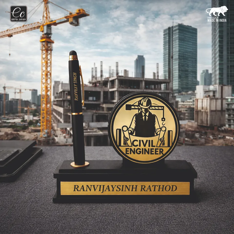Upgrade your workspace with this premium Civil Engineer desk organizer, designed to reflect professionalism and style. Crafted with a sleek black & gold finish, this desk nameplate adds a sophisticated touch to any office, cabin, or workstation.