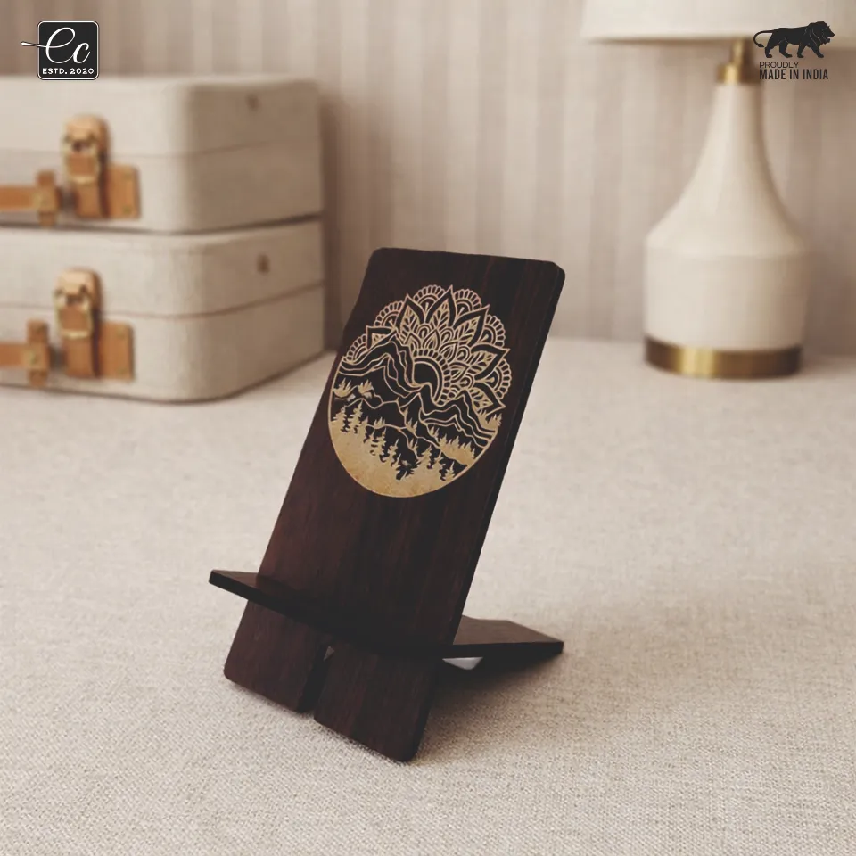 Upgrade your workspace with this beautifully crafted MDF wooden mobile stand, designed to blend functionality with timeless elegance. Featuring a rich wooden finish and intricate laser-engraved artwork, this stand adds a touch of sophistication to any desk—whether at home or in a professional office.