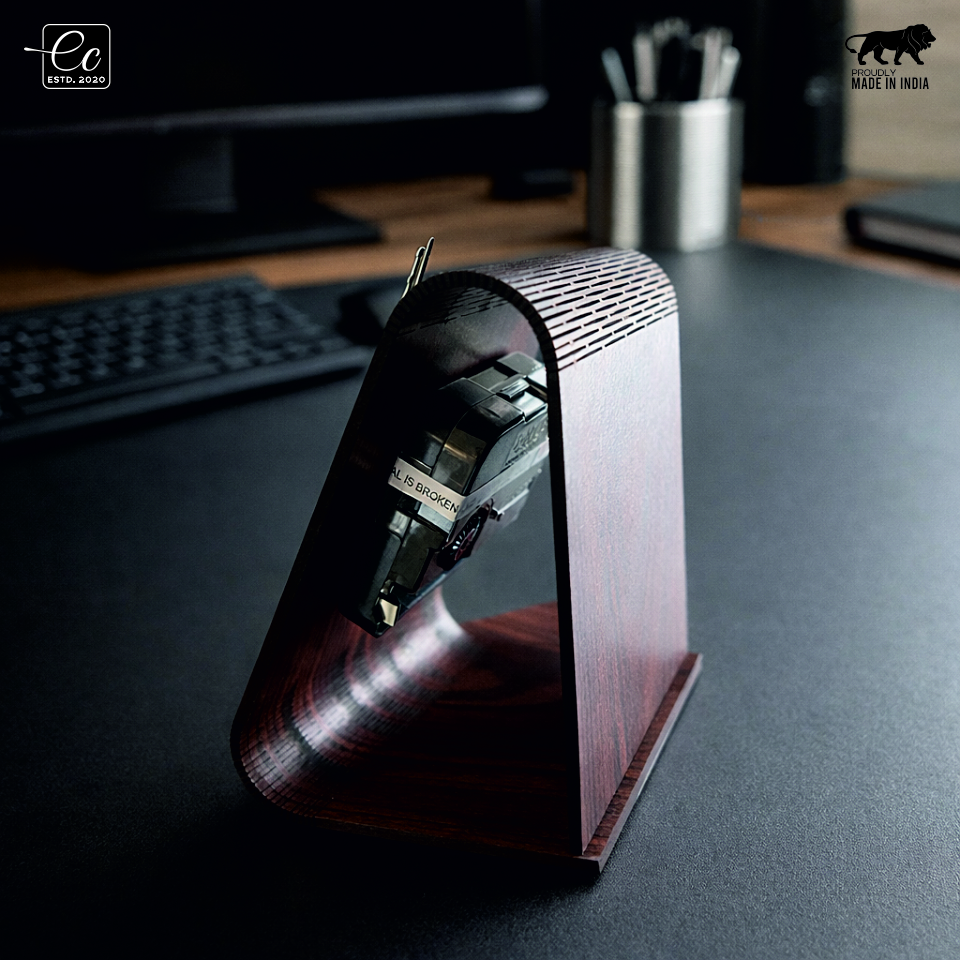 Add a touch of sophistication to your desk with this beautifully handcrafted wooden clock. Designed with a unique curved silhouette and dual-tone finish, this piece blends modern aesthetics with timeless craftsmanship.