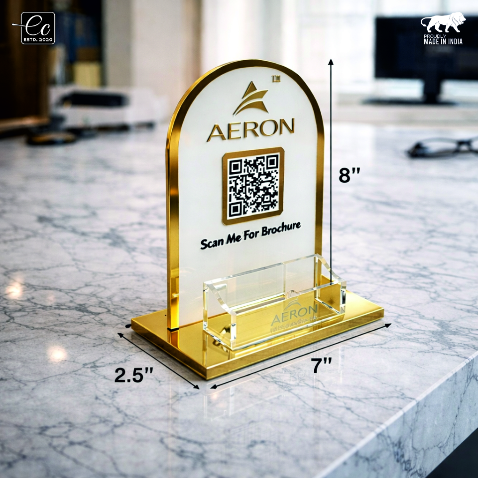 Elevate your brand presence with this luxury QR code display stand, designed to create a strong impression at reception desks, corporate offices, clinics, showrooms, and retail counters.