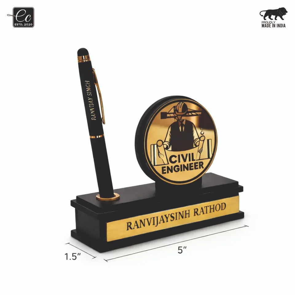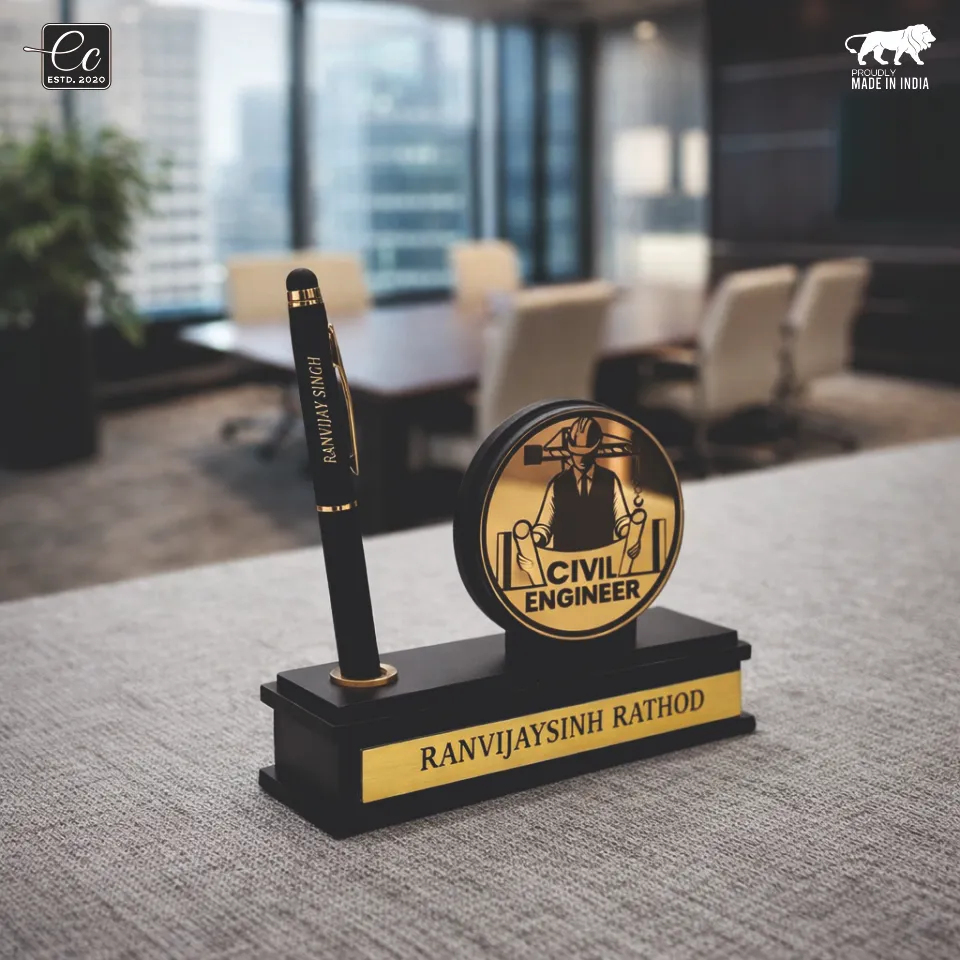 Upgrade your workspace with this premium Civil Engineer desk organizer, designed to reflect professionalism and style. Crafted with a sleek black & gold finish, this desk nameplate adds a sophisticated touch to any office, cabin, or workstation.
