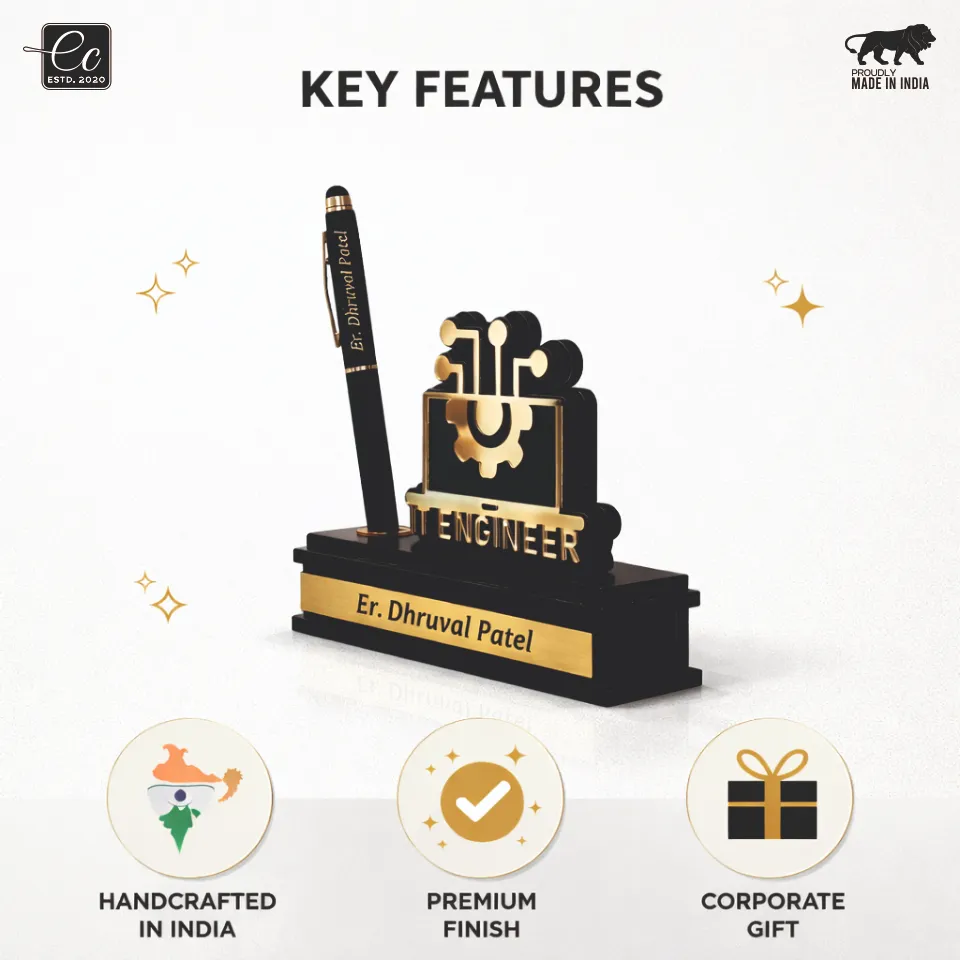 Upgrade your workspace with this stylish and personalized desk organizer, specially designed for IT professionals and creative graphic designers. Featuring a sleek black & gold finish, this premium piece blends technology, creativity, and elegance into one standout desk accessory.